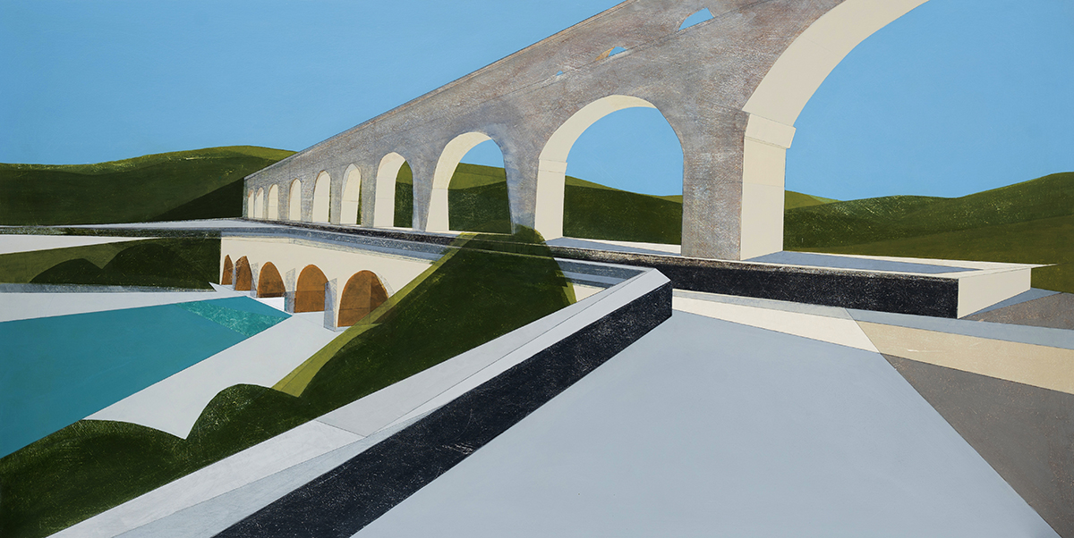 “The paintings in this exhibition are the outcome of my experiences from different places each shaped in common by landscape and architecture.”