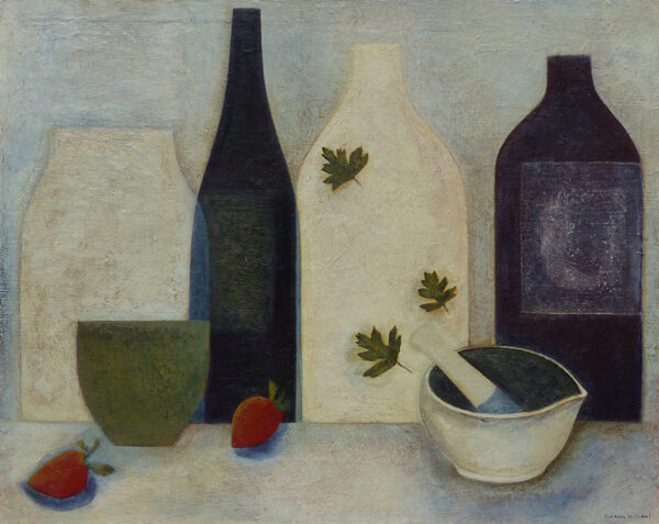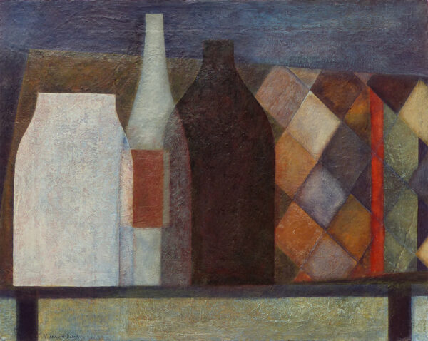 As Andrew Green, the former Head of the National Library of Wales writes, the paintings ‘possess a determined search for harmony: not just a visual harmony, but a corresponding human harmony, a learned stillness of mind. Vivienne has long been influenced by Tibetan Buddhism, which emphasises the importance of achieving tranquillity through removing mental obstruction. Her paintings are more than self-complete formal compositions. They do hold an intent, for those open to their invitation’.