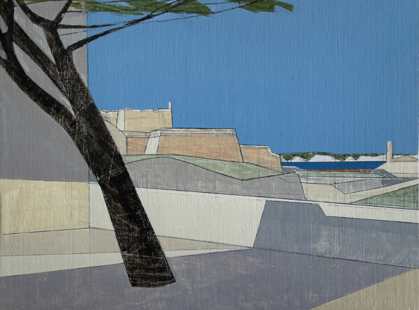 “Vanessa Gardiner is expert at recognising and depicting the geometry in nature. Her paintings are full of coastal light and the way the sea engages the shore in an endless dialogue. In a sense the sea draws the landscape, excavating it and caressing it over centuries, sculpting it into the most intricate and specific shapes. Gardiner identifies this elemental relationship and makes it the focus of her imagery: history and geology play their roles too, and her paintings incorporate a sense of other disciplines, especially archaeology and architecture. These various energies and components are resolved into a still image which yet also contains movement….