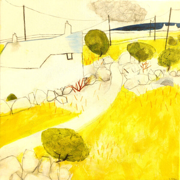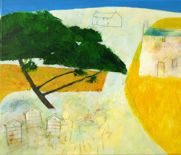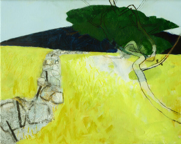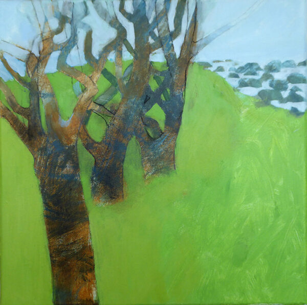 Past the Windswept Hawthorn - mixed media on board - 28 x 28cm